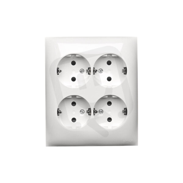 Čtyřzásuvka s uzemněním, Schuko, IP20 se závěrkami proudových cest bílá