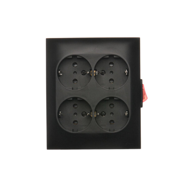 Čtyřzásuvka s uzemněním, Schuko - IP20 - se zabudovaným vypínačem černá matná