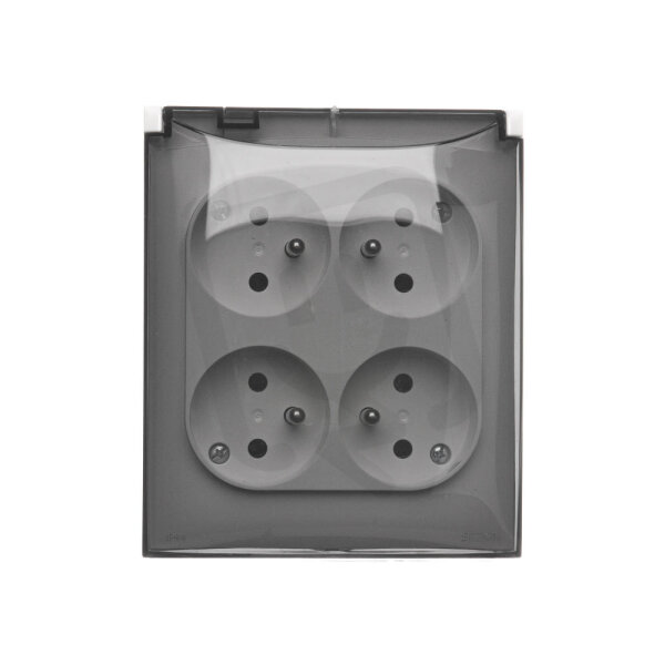 Čtyřnásobná zásuvka s uzemněním - verze IP44 - průhledná klapka bílá ACGZ4/11A