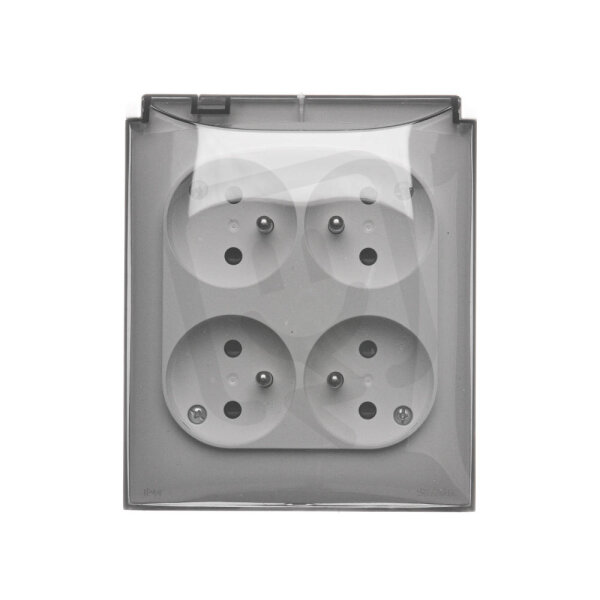 Čtyřnásobná zásuvka s uzemněním - s žaluziemi, IP44 - průhledná klapka bílá