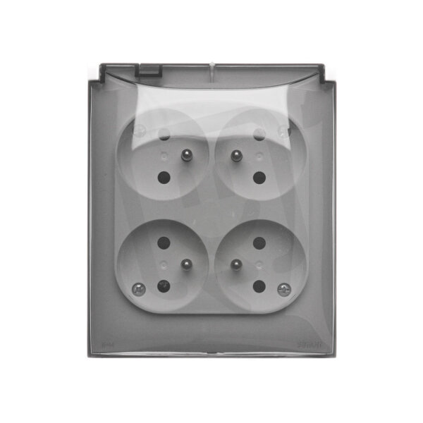 Čtyřnásobná zásuvka s uzemněním - s žaluziemi, IP44 - průhledná klapka bílá