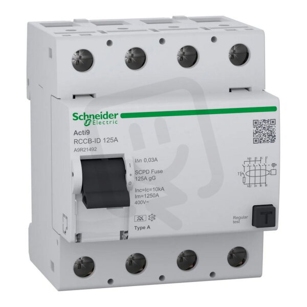 Acti9 RCCB-ID 4P 125A 30mA A najdete v kategoriích Spínací a jistící přístroje, Proudové chrániče, Rozvodnice, výkonové spínací a jistící prvky, Proudový chránič, výrobce Schneider, EAN 3606486868997, kód dodavatele A9R21492. Acti9 RCCB-ID 4P 125A 30mA A SCHNEIDER A9R21492 nabízíme od 1 ks. Kód EMAS Acti9 RCCB-ID 4P 125A 30mA A je ELOSOS1871702.