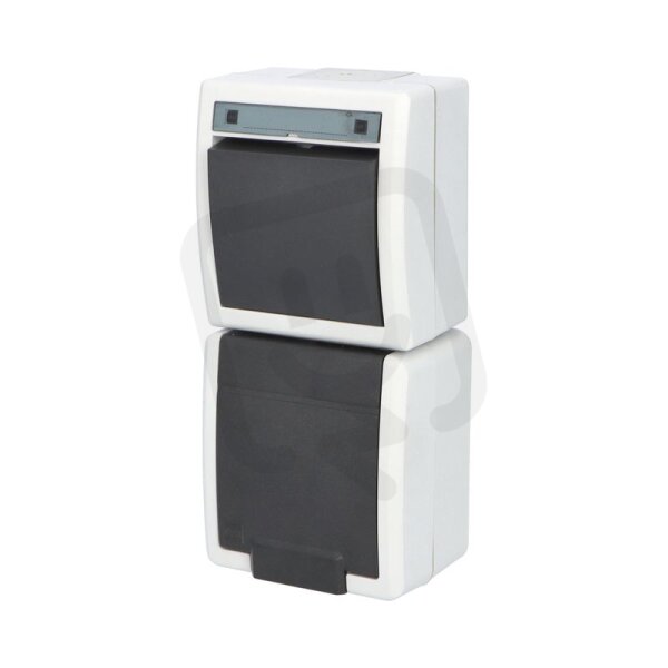 ATLAS 2K IP55 Přepínač č.6+zásuvka 2P+PE svisle s ochr. kolíkem, šedý