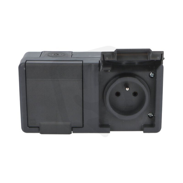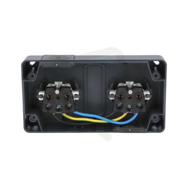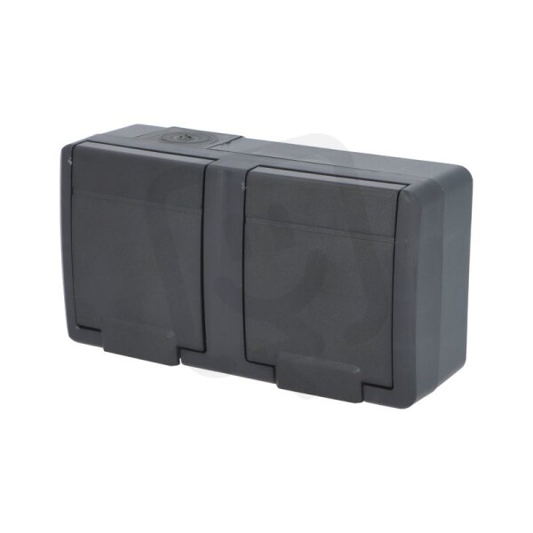 ATLAS 2K IP55 Zásuvka 2x 2P+PE, 2-násobná vodorovná s ochr. kolíkem, antracitová