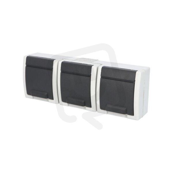 ATLAS 2K IP55 Zásuvka 3x 2P+PE, 3-násobná vodorovná s ochr. kolíkem, šedá
