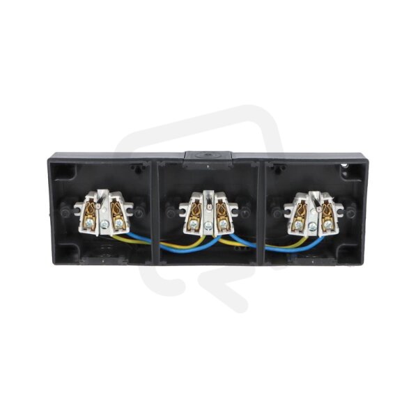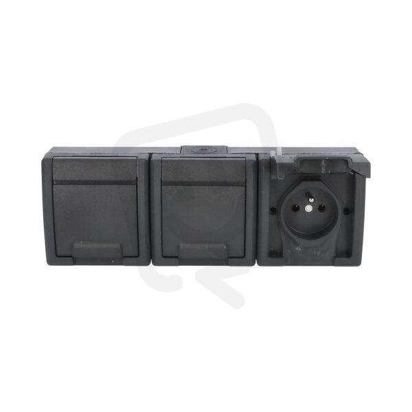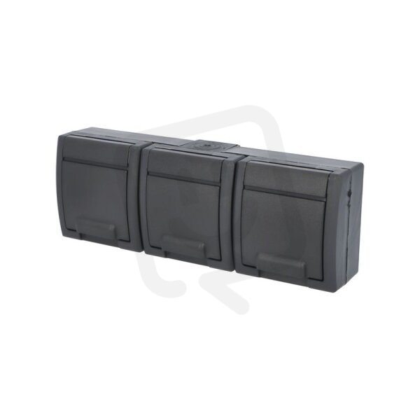 ATLAS 2K IP55 Zásuvka 3x 2P+PE, 3-násobná vodorovná s ochr. kolíkem, antracitová