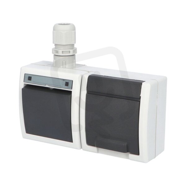 ATLAS 2K IP65 Přepínač č.6+zásuvka 2P+PE vodorovně s vývodkou M20, na povrch, šedá
