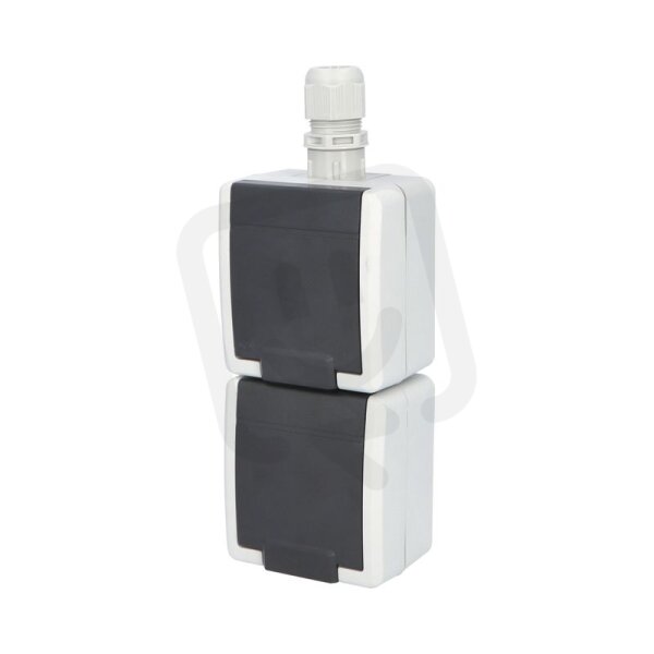 ATLAS 2K IP65 Zásuvka 2x 2P+PE, 2-nás svislá s vývodkou M20, na povrch, šedá