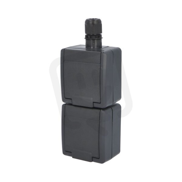 ATLAS 2K IP65 Zásuvka 2x 2P+PE, 2-nás svislá s vývodkou M20, na povrch, antracit