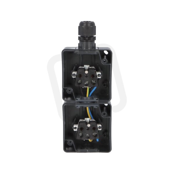 ATLAS 2K IP65 Zásuvka 2x 2P+PE, 2-násobná svislá s vývodkou M20, na povrch, antracitová