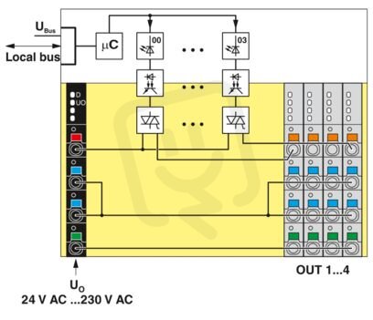 Axioline F, Digitální výstupní modul, Digitální výstupy: 4 (Triac výstupy se spínačem nulového napětí), 230 V AC, 2 A, technologie připojení: 3 vodič, přenosová rychlost v místní sběrnici: 100 MBit/s, krytí: IP20, včetně modulu patice sběrnice a Axioline F zástrček