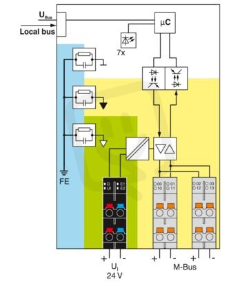 Axioline F, Master sběrnice M-Bus, rozhraní M-Bus, K připojení zařízení sběrnice M-Bus, přenosová rychlost v místní sběrnici: 100 MBit/s, krytí: IP20, včetně modulu patice sběrnice a Axioline F zástrček