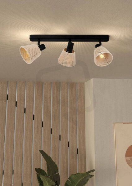 SEAGARD lišta svítidla zaujme výraznou kombinací černého kovu a rafinovaně zpracovaných textilních stínidel. Na podlouhlém baldachýnu jsou umístěny tři nastavitelné spoty, jejichž stínidla jsou tvořena jemnými krémovými nitěmi ve dvou vrstvách. Vzdušný design vytváří zajímavou hru světla a stínu a dodává každému prostoru teplý, řemeslný nádech. Objímky E14 nabízejí volnost při výběru světelných zdrojů podle individuálních preferencí – ať už filamentové žárovky pro atmosférické osvětlení, nebo LED diody pro vysokou energetickou efektivitu. Svítidlo svůj dekorativní charakter nejvíce rozvíjí zejména v obývacích pokojích, jídelnách nebo ložnicích.