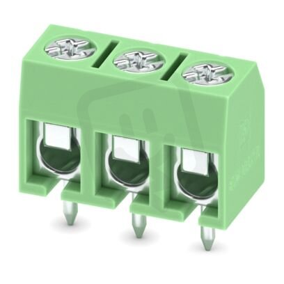 Nevyměnitelná svorka desky s plošnými spoji, jmenovitý proud: 15 A, jmenovitý průřez: 2,5 mm², počet potenciálů: 3, počet řad: 1, rozteč: 5 mm, typ připojení: Šroubové připojení s třmenem ochrany vodiče, typ šroubového připojení: H1L Philipps-Recess s podélnou drážkou, montáž: Vlnové pájení, směr připojení vodič/deska: 0 °, Pin-Layout: Lineární pinning, Délka pinu [P]: 3,6 mm, způsob balení: zabaleno v krabici