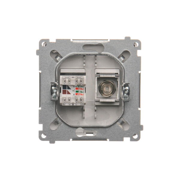 Anténa zásuvka typ F + počítačová zásuvka RJ45 kat.6, Inox BMAFRJ45.01/21
