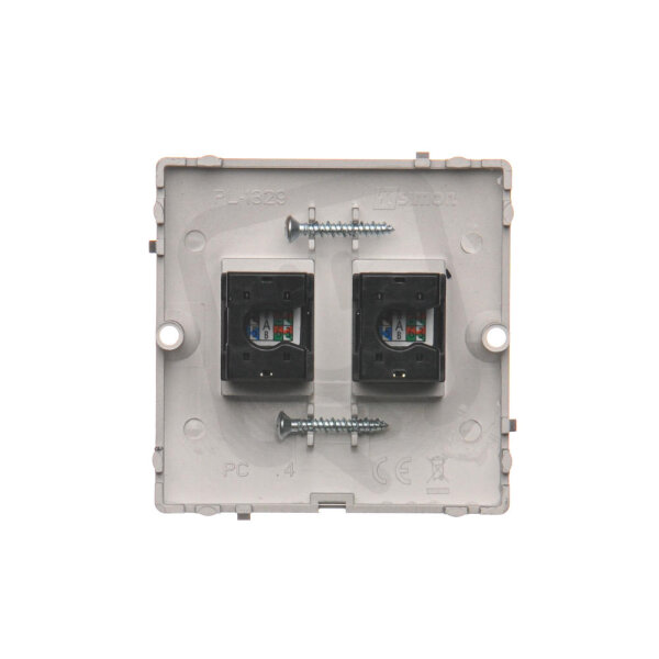 Dvojnásobná počítačová zásuvka RJ45 kat. 5e, Inox KONTAKT SIMON BMF52.02/21