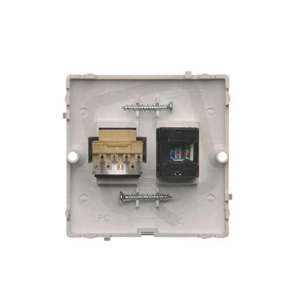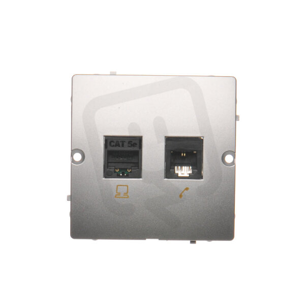 Telefonní zásuvka RJ11 + počítačová zásuvka RJ45 kat. 5e, stříbrná matná