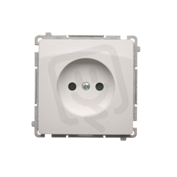 Zásuvka jednonásobná bez uzemnění se clonami elektrických kolejí bílá
