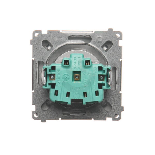 Zásuvka jednonásobná bez uzemnění se clonami elektrických kolejí stříbrná