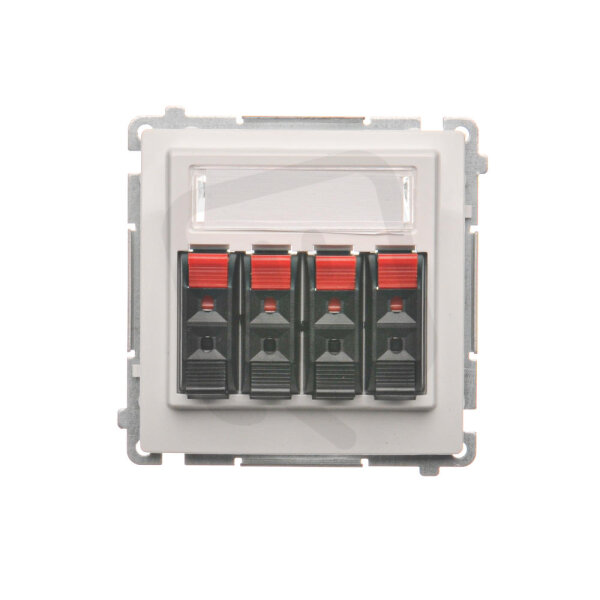 4-násobná zásuvka reproduktorová, s popisovým polem, bílá