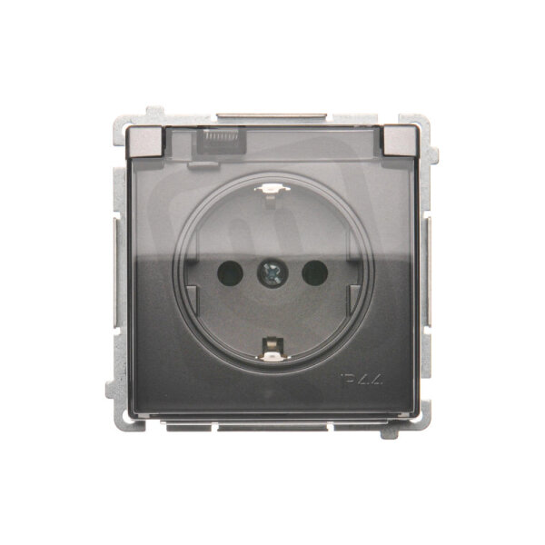 Zásuvka jednonásobná typu Schuko IP44 16 A, 250 V~, průhledný kryt Inox