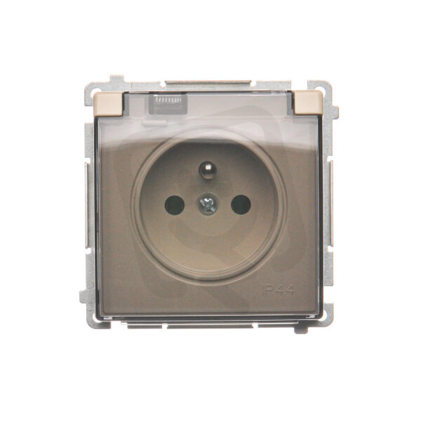 Zásuvka jednonásobná IP44 s uzemněním, 16 A, 250 V~ s průhledným víčkem,béžová