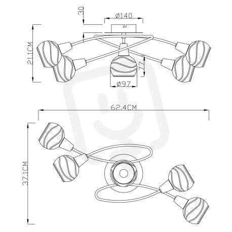 Stropní svítidlo ISLA bronz 5xE14 LED 4W 230V 324lm 3000K GLOBO 54347-5