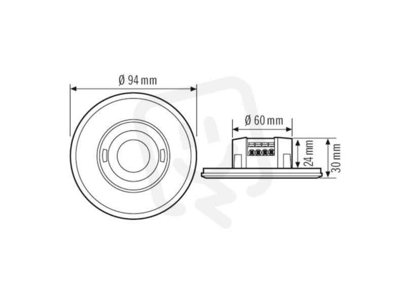 Čidlo je určené pro použití v menších místnostech a chodbách vč. schodišť. Montáž na strop, při doporučené montážní výšce 3 m (min. 2,5 m, max. 5 m).