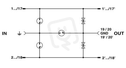 Konektor LSA-PLUS (COMTRAB CT 10) s hrubou/jemnou přepěťovou ochranou pro 18 signálních vedení - GND a hrubá ochrana GND - PE. Jmenovité napětí: 24 V DC. Provedení: 10 dvojvodičů
