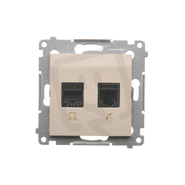 Telefonní zásuvka RJ12 + počítačová zásuvka RJ45 kat. 5e, krémová D5T.01/41