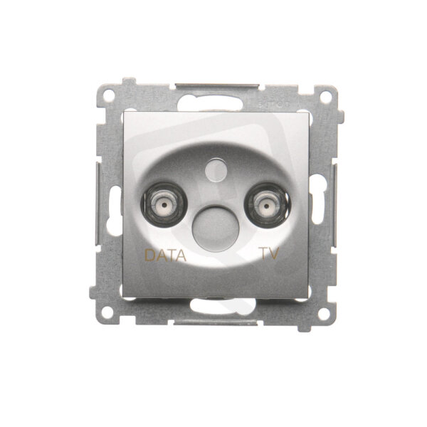 Zásuvka TV-DATA, dva výstupní porty týpu 'F', frekvence pro vstup 5-1000 MHz, stříbrná matná metalizované