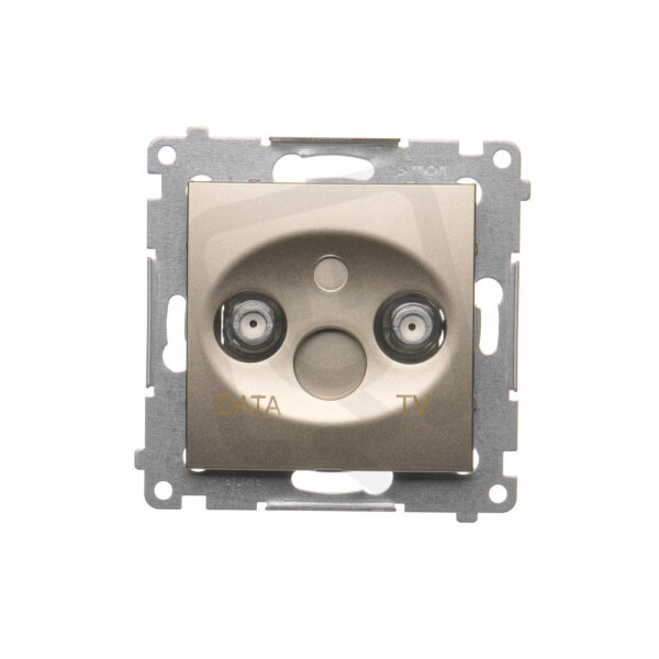 Zásuvka TV-DATA, dva výstupní porty týpu 'F', frekvence pro vstup 5-1000 MHz, zlatá matná, metalizované
