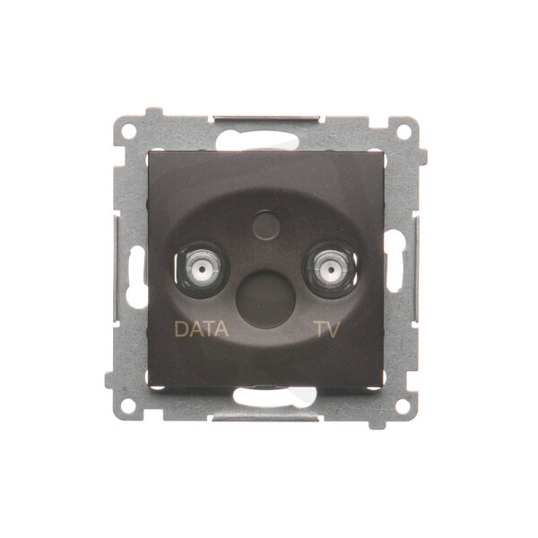 Zásuvka TV-DATA, dva výstupní porty týpu 'F', frekvence pro vstup 5-1000 MHz, hnědá matná metalizované