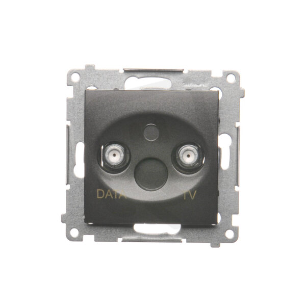 Zásuvka TV-DATA, dva výstupní porty týpu 'F', frekvence pro vstup 5-1000 MHz, antracit mat, metalizované