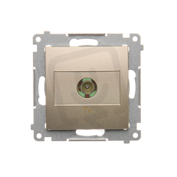 Zásuvka anténní TV jednoduchá koncová, pouze pro individuální instalace, zlatá matná, metalizované