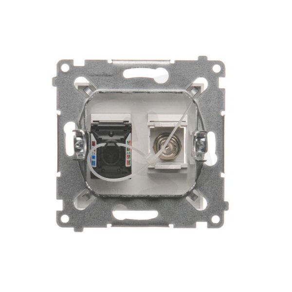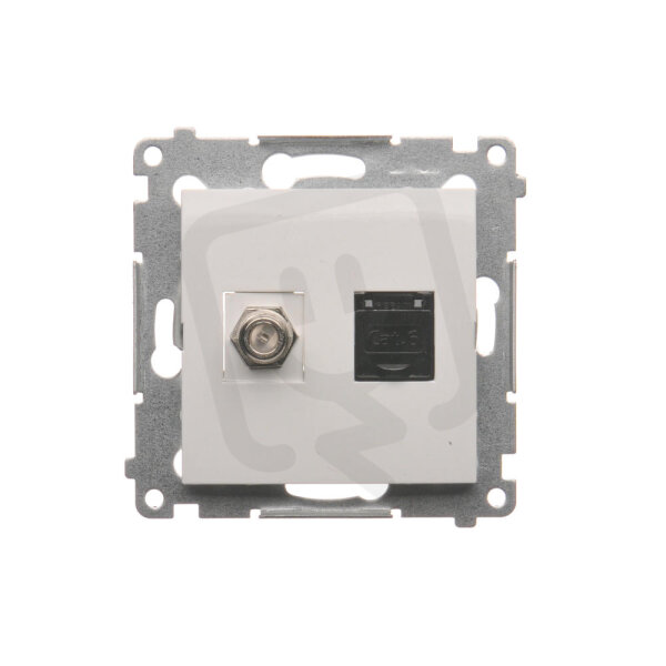 Anténní zásuvka typ F + počítačová zásuvka RJ45 kat.6, bílá DASFRJ45.01/11