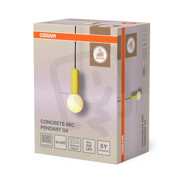 DECOR CONCRETE MIC PENDANT 1XG9 YE OSRAM najdete v kategoriích Svítidla, Závěsné svítidlo, Svítidla, světelné zdroje a LED osvětlení, EAN 4058075848306, kód dodavatele 4058075848306. Decor Concrete Mic Pendant 1XG9 Yellow OSRAM 4058075848306 nabízíme od 1 ks. Kód EMAS DECOR CONCRETE MIC PENDANT 1XG9 YE OSRAM je ELOSOS1985860.