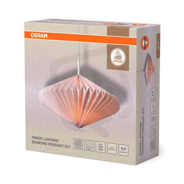 Decor Paper Lantern Diamond Pendant E27 White OSRAM 4058075847149