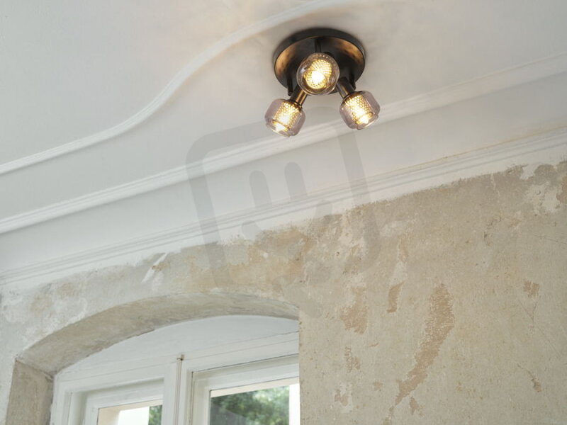 Stropní svítidla vyrobená z kombinace zlaté voštinové mřížky s kouřovým sklem s paticí E14.
