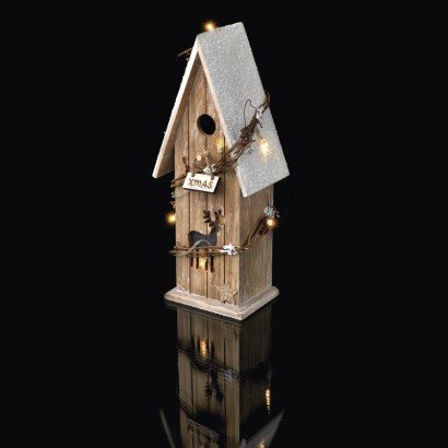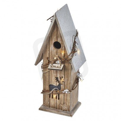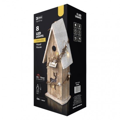LED vánoční domek dřevěný, 33cm, 2xAA, teplá bílá, časovač