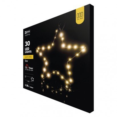 LED vánoční hvězda kovová, 3xAA, teplá bílá, časovač