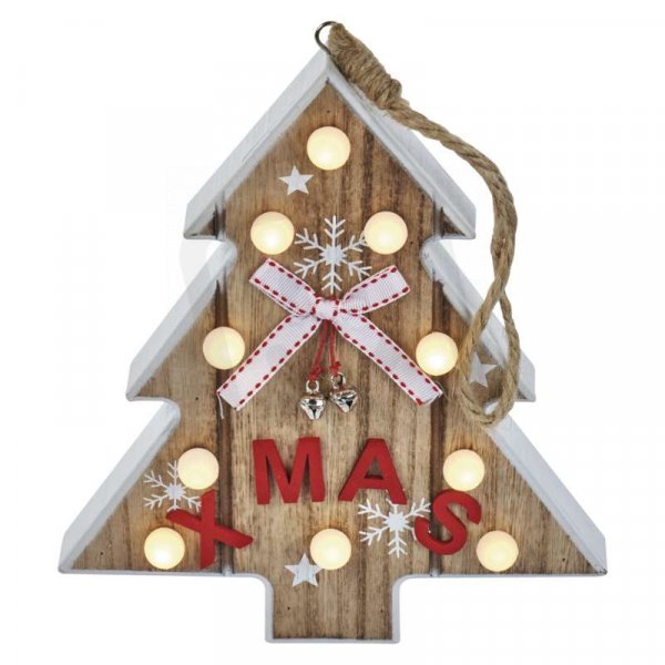 LED vánoční stromek dřevěný, 2xAAA, teplá bílá, časovač