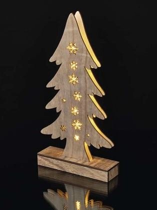 LED vánoční stromek dřevěný, 2xAA, teplá bílá, časovač