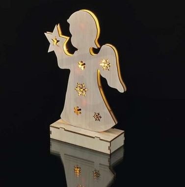 LED vánoční andělíček dřevěný, 2xAA, teplá bílá, časovač