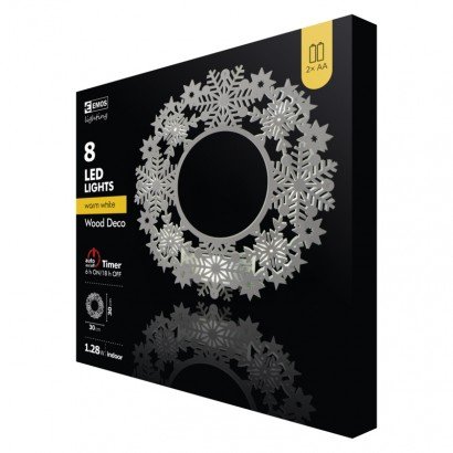 LED vánoční věnec, 2xAA, vnitřní použití, teplá bílá, časovač