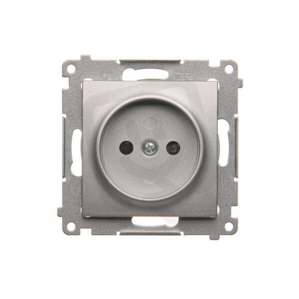 Zásuvka jednonásobná bez uzemnění se clonami elektrických kolejí stříbrná