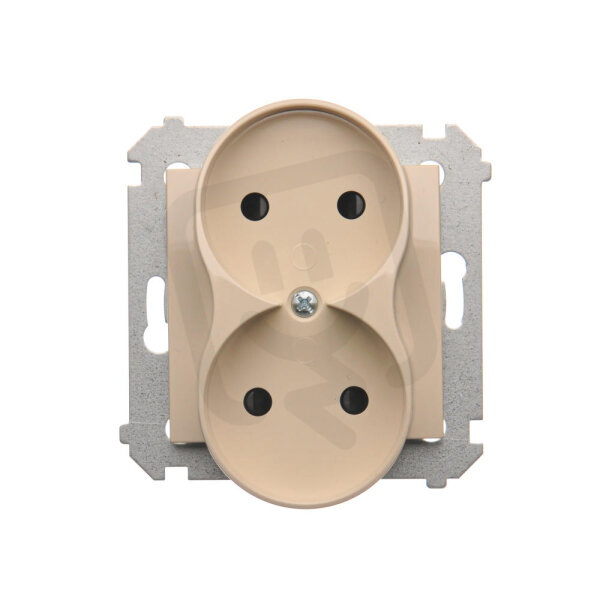 dvojitá kolíková zásuvka bez uzemnění se clonami elektrických kolejí krémová