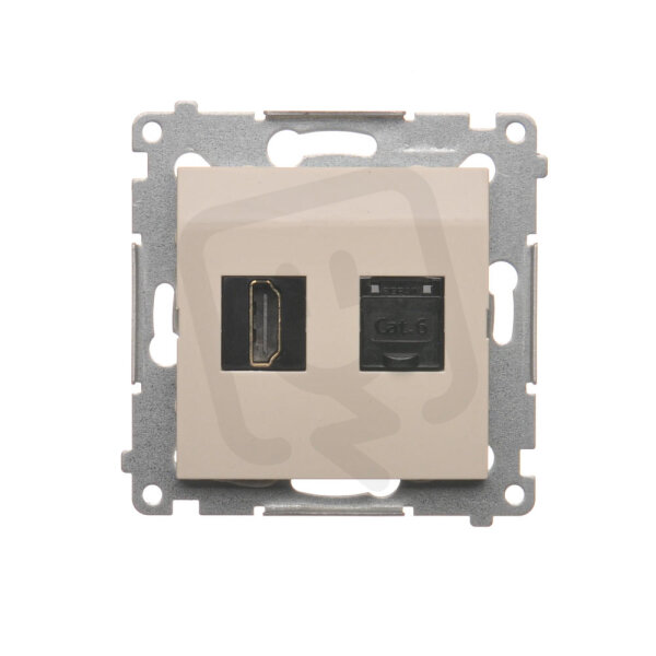 Zásuvka HDMI + počítačová zásuvka RJ45 kat.6, krémová DGHRJ45.01/41
