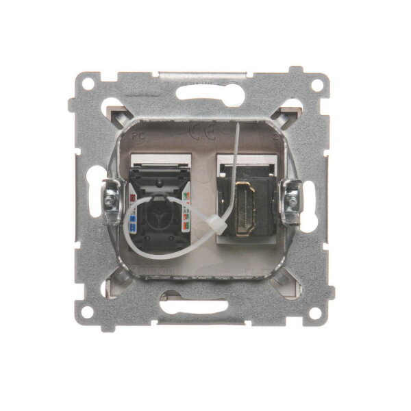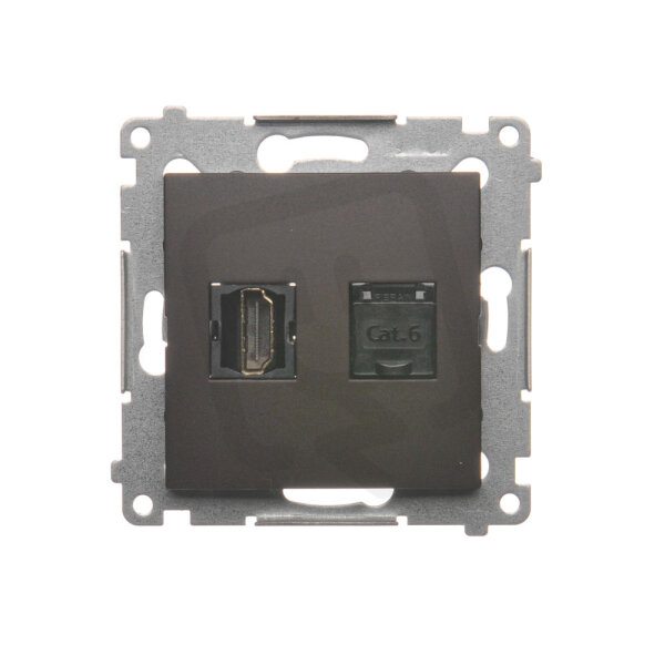 Zásuvka HDMI + počítačová zásuvka RJ45 kat.6, hnědá matná metalizované