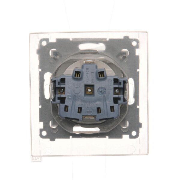Zásuvka Schuko IP44 s clonkami a těsněním rámečku 16A, 250V~, bílá